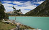 Después de un poco más de bosque, seguimos nuestra caminata bordeando el río Esmeralda hasta llegar a la indescriptible Laguna Esmeralda, un pequeño lago de origen glaciar, que debe su nombre al color que le dan los sedimentos que provienen del Glaciar Ojo del Albino.